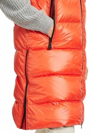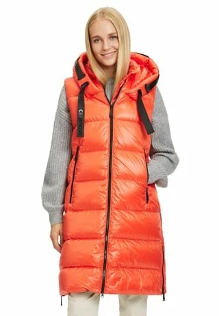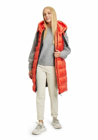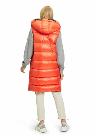 Longwesten sind der absolute Modetrend! Diese unifarbene, modische Kapuzendaunenweste der Marke Betty Barclay mit dekorativem Logodruck im Futter und Seitenschlitzen mit Reißverschlüssen ist definitiv ein modisches Muss! Die sportive Weste mit der raffinierten Kapuze ist angenehm zu tragen und super kombinierbar. Cool und lässig!