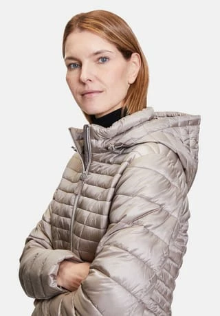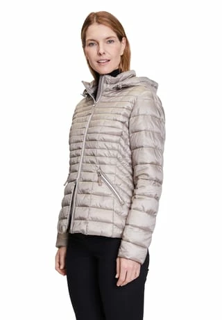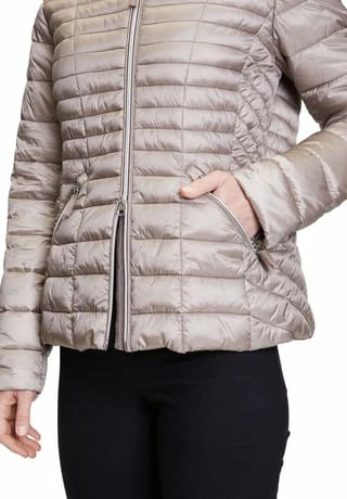 Casual goes trendy! Diese superleichte Steppjacke mit Kunstfaserwattierung der Marke Betty Barclay zeigt wie es funktioniert. Highlights sind die dekorativen Bänder mit Kontraststichen als Reißverschlussanhänger. Die leichte Taillierung sorgt für einen feminine Touch.
