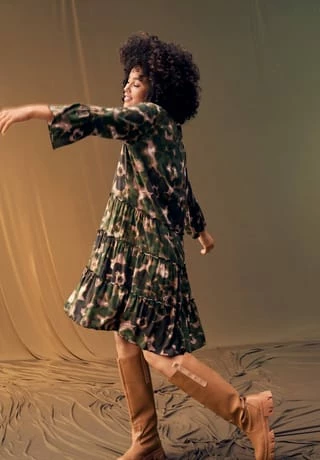 Modischer Look, ausgezeichneter Tragekomfort und beste Kombinierbarkeit, was wünscht man sich mehr. Das Casual-Kleid überzeugt mit seiner Kombinierfähigkeit. Es hat ein florales Muster und einen modischen V-Ausschnitt mit 3/4 Arm.