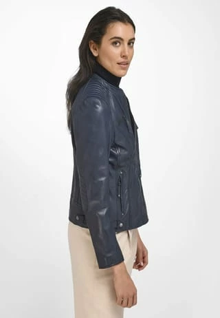 Lederjacke von EMILIA LAY aus supersoftem Lammnappaleder in zeitloser Farbgebung und markanten Lederteilungsnähten. Universell einsetzbar zu Kleid, Rock oder Hose! Mit Stehkragen, Frontreißverschluss, 2 Reißverschlusstaschen, 2 Reißverschluss-Brusttaschen und einem Druckknopfriegel am Saum. Futter in 100% Polyester. Länge in Größe 42 ca. 55 cm. Für diese Lederjacke empfehlen wir Lederspezialreinigung.