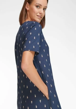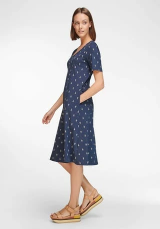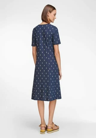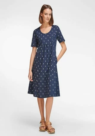 Jersey-Kleid von GREEN COTTON: klassische Schlichtheit trifft ausgesuchten Tragekomfort. Das edle Dunkelblau mit kleinem Krawatten-Dessin verleiht dem legeren Figurschmeichler mit 1/2-Arm, femininen Raffungen unterhalb der Brust und praktischen Seiten-Nahttaschen eine citytaugliche Optik. 100% Baumwolle, GOTS-zertifiziert. Länge ca. 110 cm. Dieses Jersey-Kleid ist maschinenwaschbar.
