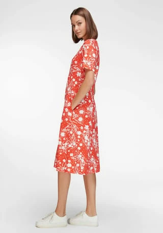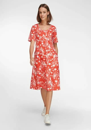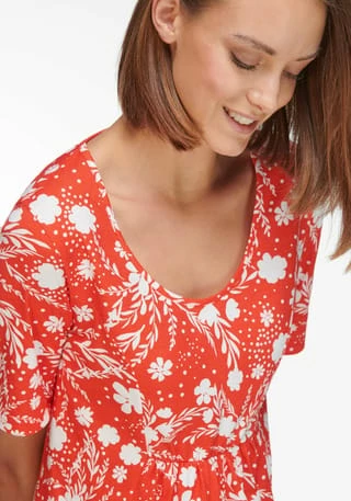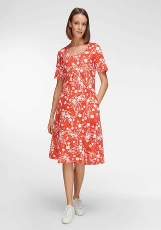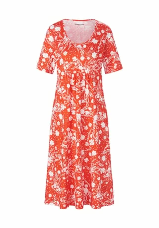 Jersey-Kleid von GREEN COTTON: mit Rundhals-Ausschnitt und 1/2-Arm. Ungezwungen leger und weiblich zugleich in figurgünstigem Schnitt mit zarten Raffungen unterhalb der Brust und komfortablen Seiten-Nahttaschen. Garantiert nicht zu übersehen in strahlendem Rot mit zarten floralen Elementen. Länge ca. 110 cm. 100% Baumwolle, GOTS-zertifiziert. Dieses Jersey-Kleid ist maschinenwaschbar.
