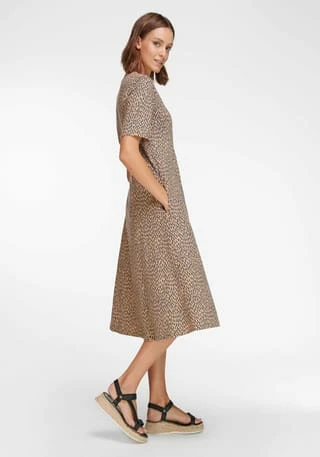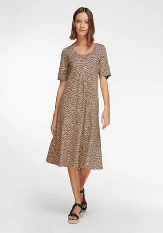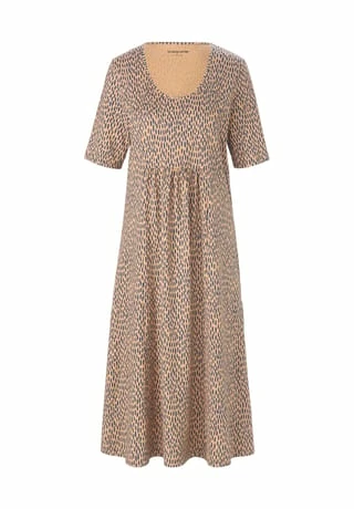 Jersey-Kleid von GREEN COTTON: Mit Rundhals-Ausschnitt und 1/2-Arm. Ungezwungen leger und weiblich zugleich in figurgünstigem Schnitt mit zarten Raffungen unterhalb der Brust und komfortablen Seiten-Nahttaschen. Kurze Pinselstriche in Blau entfalten auf dem sandfarbigen Untergrund eine harmonische Lebendigkeit. Die Länge ca. 110 cm. 100% Baumwolle, GOTS-zertifiziert. Dieses Jersey-Kleid ist maschinenwaschbar.
