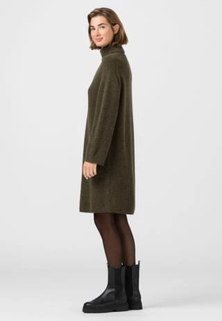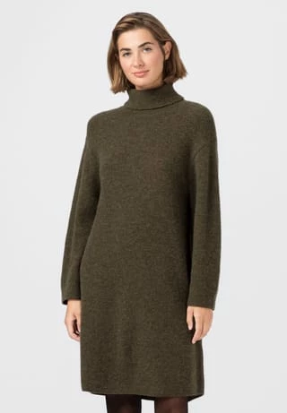 Wunderbarer Comfy Style von HALLHUBER: kurzes Strickkleid aus Feinstrick in weicher Alpaka-Wolle-Qualität mit leicht haariger Oberflächenstruktur. In neuem Ärmeldesign mit gerader, weiter Form, kuscheligem Rollkragen und leicht ausgestellter Passform. Styling-Tipp: im Stilbruch mit schweren Lederboots und Strumpfhose tragen.think forward. Mulesing ist eine schmerzhafte Methode, um Schafe vor Fliegenbefall zu schützen. HALLHUBER befindet diese Verfahrensweise als nicht ökologisch vertretbar, weshalb bei der Auswahl von Merinowolle darauf geachtet wird, sie von Zulieferern zu beziehen, die kein Mulesing betreiben.