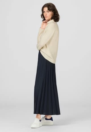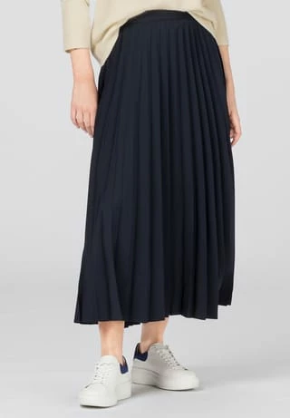 Trend-Klassiker: der Plisseerock in Midilänge! Der HALLHUBER Rock kommt in cleanem Design mit modischem High-Waist-Bund und weit schwingender Saumlinie. Gefertigt ist er aus leichtem Twill und ohne Futterstoff. Tragen Sie etwa derbe Lederboots und weite Strickpullover zu dem Style.