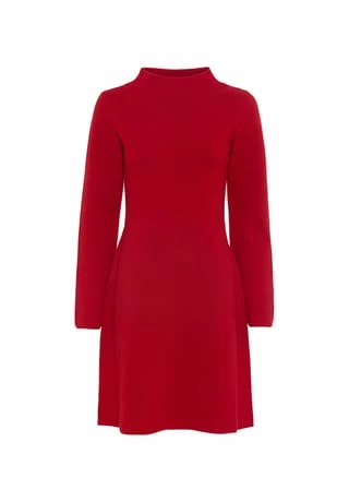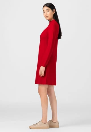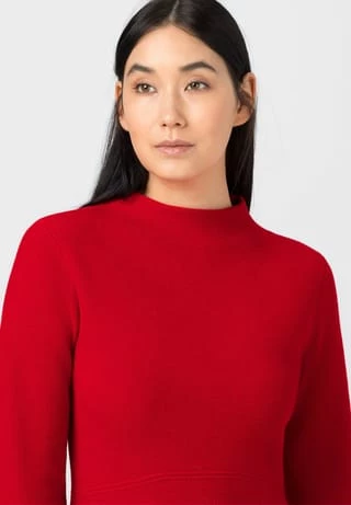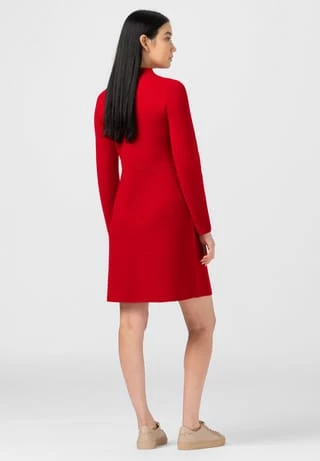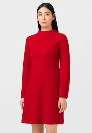 Kompakter Milanostrick aus reiner, mulesing-freier Schurwolle-Qualität: daraus ist das HALLHUBER Strickkleid mit doppellagigem Stehkragen gefertigt. Das Oberteil ist figurnah geschnitten und auf Taillenhöht mit einer gebogenen Ziernaht verfeinert. Der ausgestellte Rock schwingt bei jedem Schritt und sorgt für eine feminine Note.think forward. Mulesing ist eine schmerzhafte Methode, um Schafe vor Fliegenbefall zu schützen. HALLHUBER befindet diese Verfahrensweise als nicht ökologisch vertretbar, weshalb bei der Auswahl von Merinowolle darauf geachtet wird, sie von Zulieferern zu beziehen, die kein Mulesing betreiben.