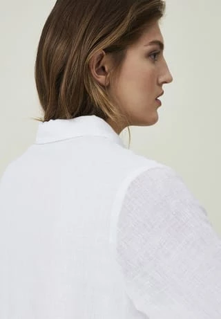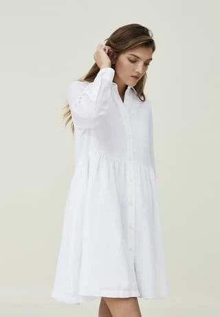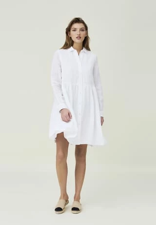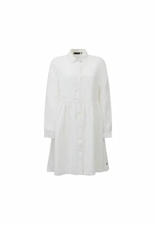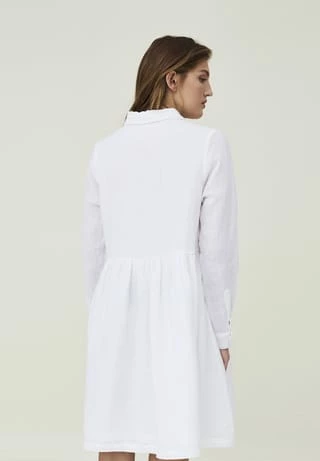 Dieses hochwertige Leinenkleid mit Baumwollfutter zeigt sich mit klassischer Passform. Das Langarmmodell ist rundum gekräuselt und wird vorn mit Knöpfen geschlossen.