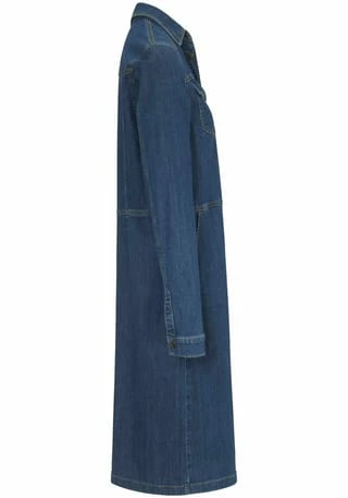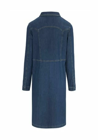 Jeanskleid von MYBC mit Manschette zum lässigen Krempeln am 1/1-Arm. Ein sportiver Dauerbrenner der Mode für jede Figur! Komfortabel und gerade geschnitten mit durchgehender Knopfleiste, Metallknöpfen, 2 aufgesetzten Brust-Pattentaschen mit Knopf, seitlichen Eingrifftaschen und kontrastfarbenen Nähten. 98% Baumwolle, 2% Elasthan. Länge ca. 100 cm. Dieses Jeanskleid ist maschinenwaschbar.