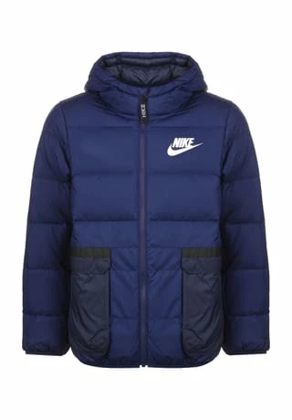 Mit der Nike Sportswear Winterjacke mit Therma-FIT-Technologie kann die kalte Jahreszeit für Kinder kommen, denn das Teil bietet Kids ein Upper mit wasserabweisendem Finish und ist besonders warm. Für die Wärmeleistung ist in erster Linie ein zuverlässiger Mix aus echten und synthetischen Daunen zuständig. Während die echten Daunen Oberkörper und Rücken wärmen, findet ihr die synthetische Isolation vorzugsweise entlang der Arme. Hier wie dort wird Körperwärme ideal gespeichert. Noch funktionaler und auch ziemlich praktisch wird’s schließlich mit den Taschen: Klappen- und Eingrifftaschen werden hier kombiniert, weshalb für ausreichend Platz sowohl für Basics als auch für kalte Hände gesorgt ist. Hier hat das Label wirklich an alles gedacht!