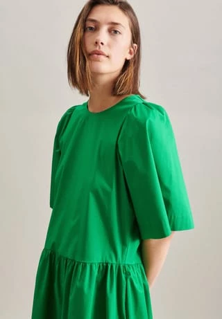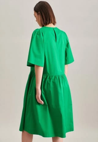 Moderner Schnitt: Das Midi-Kleid von Seidensticker erweitert Ihre Garderobe um einen hochwertigen Look, der den Geist der Zeit trifft. Gabardine stellt sich als ideale Leinwand für Ihre individuellen Outfit-Variationen dar. In Kombination mit Baumwollmischung ist er besonders ansprechend. Im klassisch-geraden Regular Schnitt schafft das Kleid höchsten Tragekomfort und liegt locker an. Das Uni-Muster setzt optische Akzente. Modernität und Eleganz verschmelzen im Design dieses Kleids und begeistern die modeaffine Frau. Dank dem Rundhals-Ausschnitt wird der smarte Charakter besonders unterstrichen. Ein modisches Lieblingsstück: Ihr neues Kleid aus der Frühjahr/Sommer Kollektion 2022.