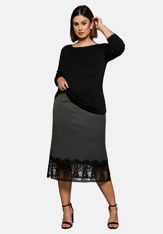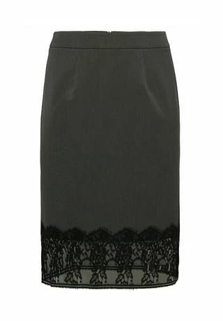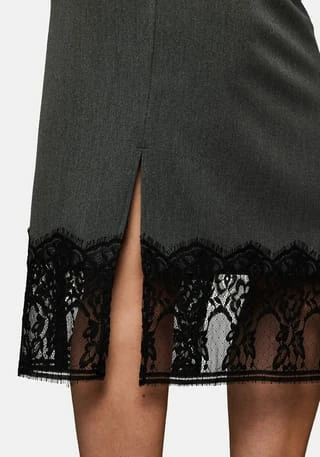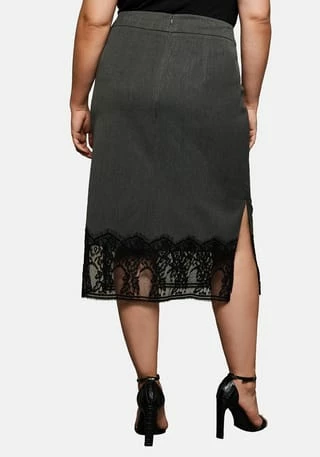 Dieser sheego Rock erhält seine feminine Eleganz durch den schmalen, wadenlangen Schnitt und das breite Band aus zarter Spitze am Saum. Hohe seitliche Schlitze und ein Stretch-Anteil sorgen für Bewegungsfreiheit und den perfekten Sitz. Zu schließen ist der Rock mit Reißverschluss und innenliegendem Knopf, das Futter ergänzt den hochwertigen Style.