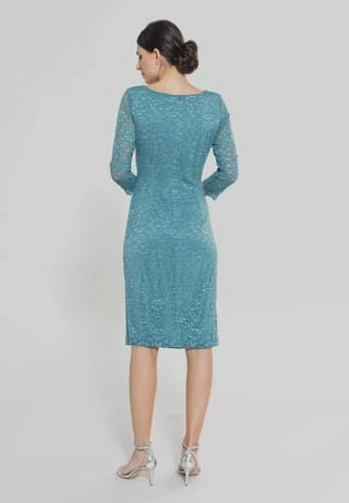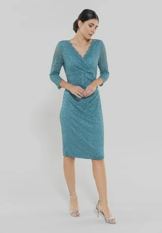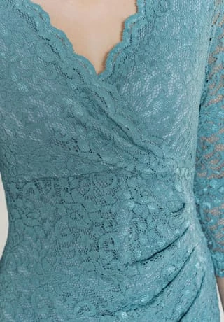 die seitliche Wickeloptik verleiht den körperbetonten Schnitt