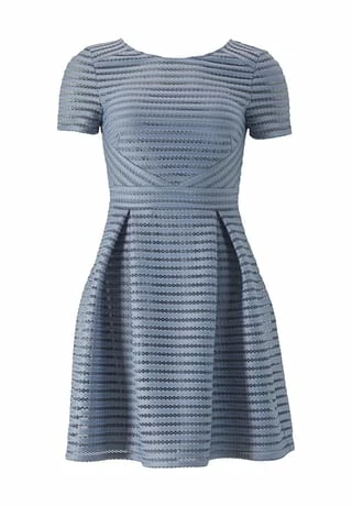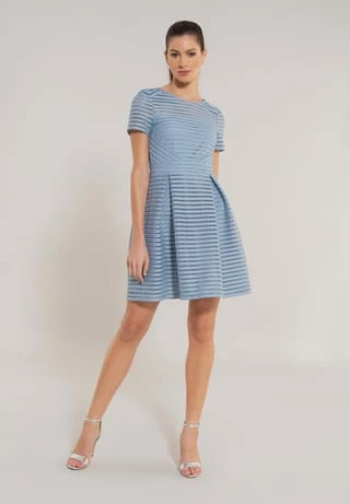 Lassen Sie sich von dem Cocktailkleid der Marke Swing überzeugen. Mit seinem runden Ausschnitt und den kurzen Ärmeln erzeugt es femininen Charme. An der Taille schmiegt sich das Kleid an den Körper, während der Rockteil dabei leicht ausgestellt ist. Verschließen lässt es sich dabei ganz einfach mit dem praktischen Reißverschluss. Abgerundet wird der Look durch das gestreifte Muster.