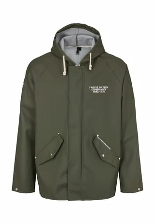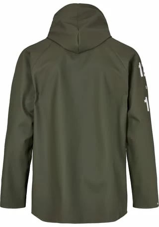 PVC-Gewebe. Raglan-Schnitt. Handgefertigte, verschweißte Nähte mit rautenförmigen Unterarmschlitzen und Belüftung auf dem Rücken. Wasserdichtigkeit: 15.000 mm